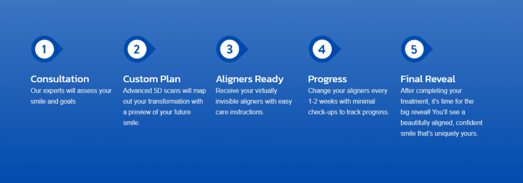 Change your aligners every 1-2 weeks with minimal check-ups to track progress.